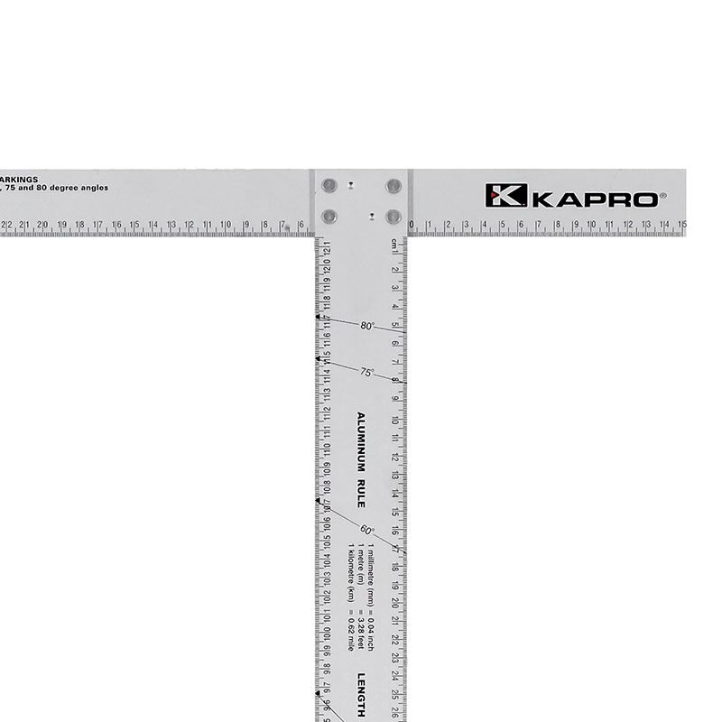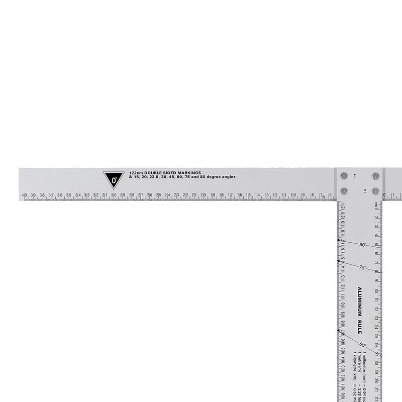 Gipsvinkel i anodiserad aluminium, mm-skala och gradmarkeringar.