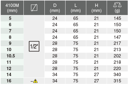 Innehåller följande storlekar: 6, 8, 10, 12 och 14 mm