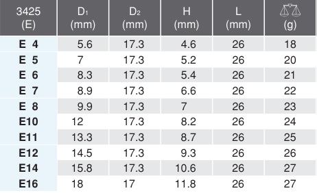 Innehåller följande dimensioner: E4, E5, E6, E7, E8, E10, E12, E14 & E16