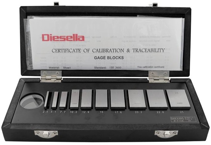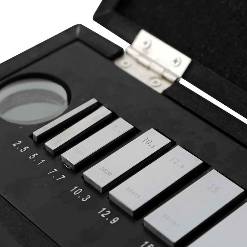 Passbitar/kontrollmått i praktiskt stryktålig väska, används vid kontroll av t.ex mikrometrar, skjutmått m.m
