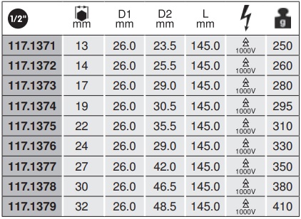 KS-Tools 1/2" VDE-isolerad hylsa extra lång 6pt 13-32mm