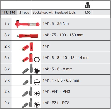 KS Tools 1/4" Hylsnyckelsats 6pt 6-14mm (moment 5-25Nm) VDE