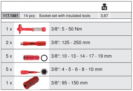 KS Tools 3/8" Hylsnyckelsats 12pt 10-19mm (moment 5-25Nm) VDE