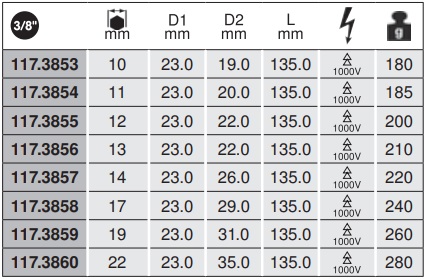 KS-Tools 3/8" VDE extra lång 12pt 10-22mm