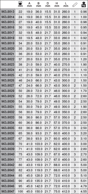 Innehåller 3x handtag uppdelat på storlekarna: 22-42 - 46-58 - 60-100 mm.