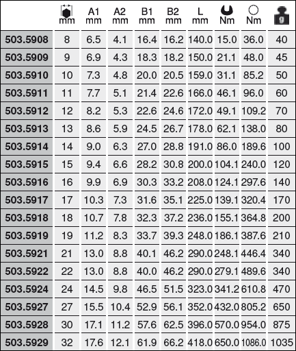 Innehåller följande storlekar: 8, 10, 13, 17 och 19 mm