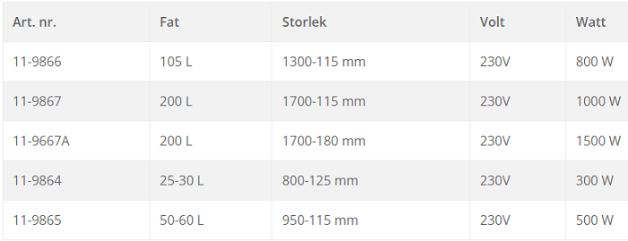 - Om du har ett 200 liters standardfat kan du bifoga upp till 3 silikonvärmare för blixtsnabb uppvärmning.