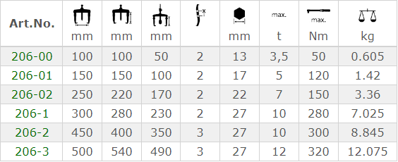 Standardavdragare med justerbara svivlande armar, mekaniskt spindel.