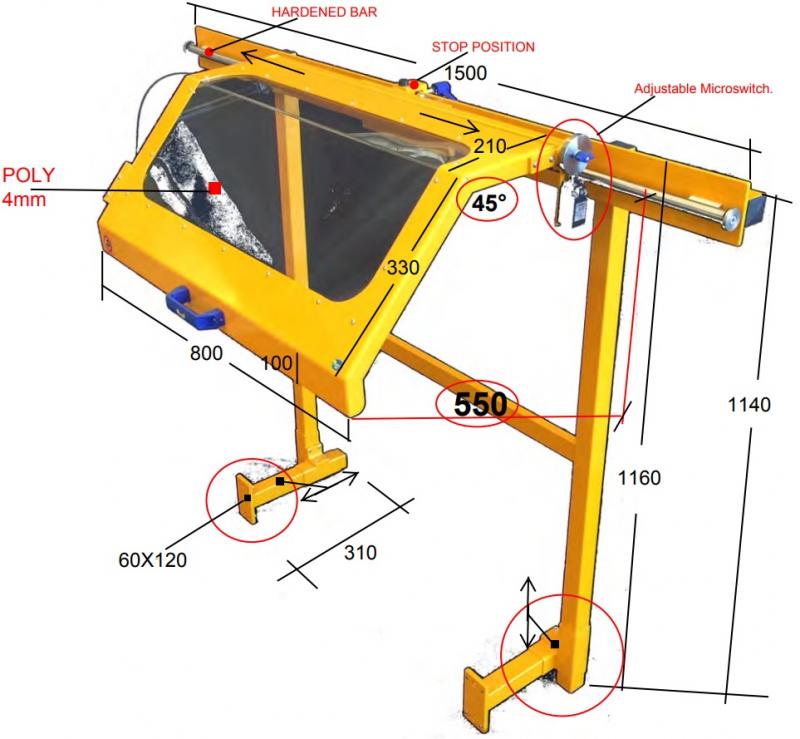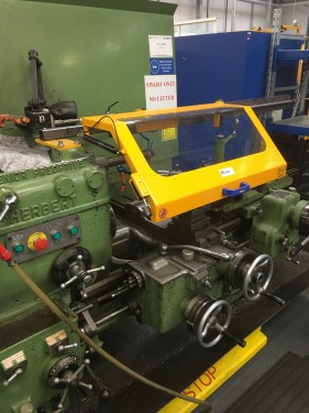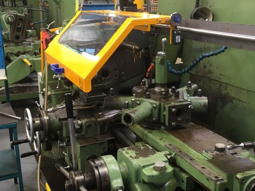Chuckskydd för svarvar, ramen av stål och siktskiva av polykarbonat, dubbel mikrobrytare, justerbar gasfjäder samt skjutbar i sidled (skena 1100mm).