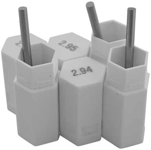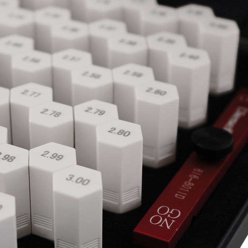 Kontrollmått i slagtålig plastväska, varje kontrollmått ligger i skyddstub märkt med storlek.