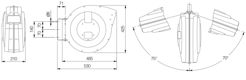 Kabel Ø: 5 x 2,5mm². Automatisk fjäderretur, plasthölje, svängbart fäste i stål samt lättåtkomlig spärrhakemekanism.