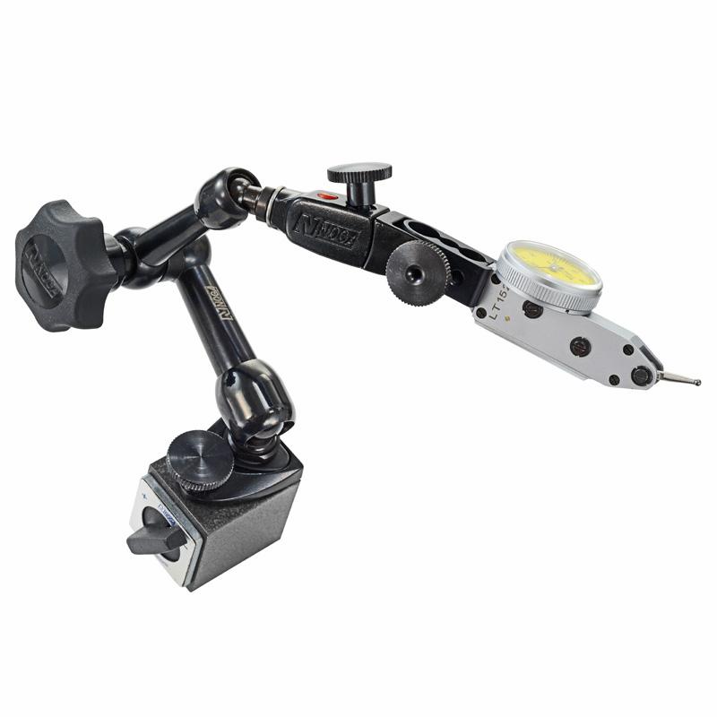 Indikatorstativ med finjustering både i botten och i toppen, stark On/Off magnet, 6 och 8 mm hållare samt 3/8" dovetail.