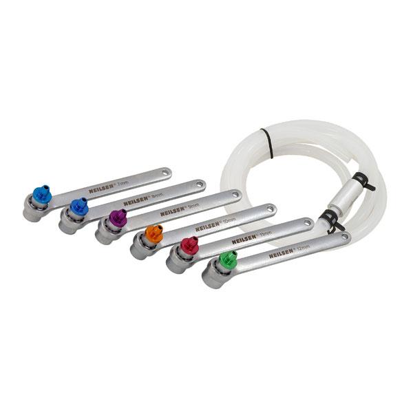 Bromsluftningsnycklar som används med tillhörande slang (inbyggd backventil), för luftning av t.ex bromsok m.m