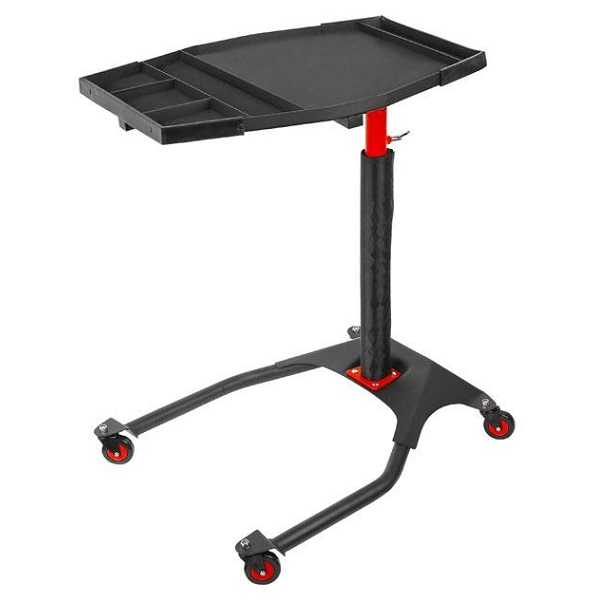 Mobilt robust verkstadsbord/servicebord/mekanikerbord, justerbart i höjd, kullagrade svivlande hjul.