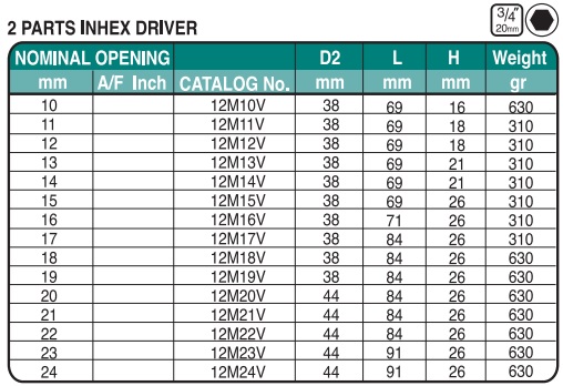 Ozat 3/4" Krafthylsa insex tvådelars 10-24MM