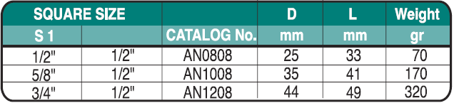 Fyrkantshylsor i kraftutförande med hål och skåra för säkerhetssprint/gummiring i båda ändar.