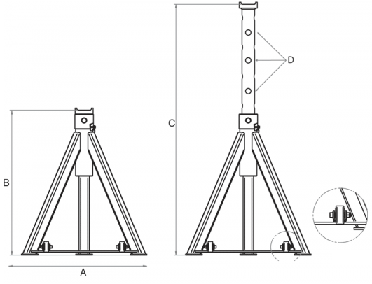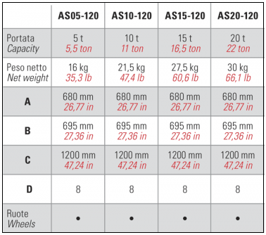 Robusta pallbockar från Italienska Cattini, utrustade med transporthjul och handtag för lättare hantering.