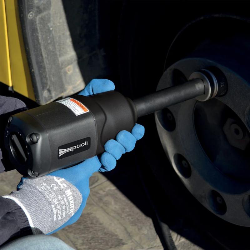 Mutterknackare med twin-hammare, drivtapp med friktionsring och hål för säkerhetssprint/gummiring, fett och smörjmedel medföljer.