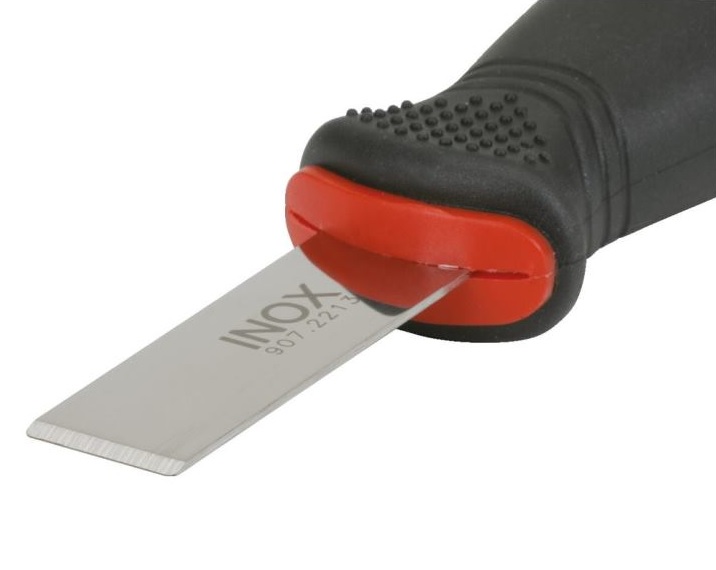 Rostfria stämjärn med tvåkomponentshandtag för extra bra grepp och slagkappa i änden på handtaget.
