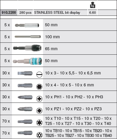 Rostfria bits som kan användas för hand eller med skruvdragare.
