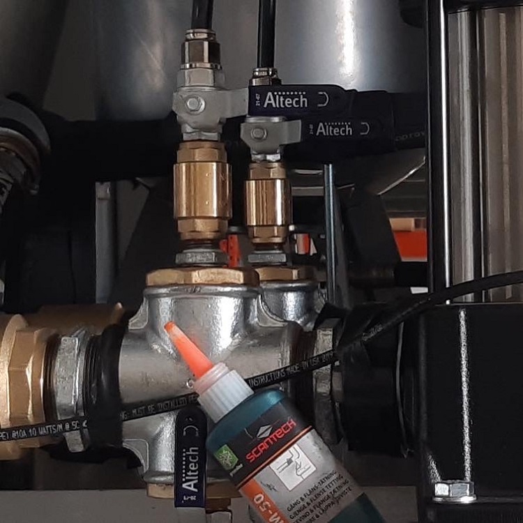 SCANTECH Greenline M-50 är en lösningsmedelsfri anaerob (härdar i frånvaro av syre) tätningsmassa som ger en snabb och läckagesäker tätning som ersätter lin, teflonband och konventionella packningar.