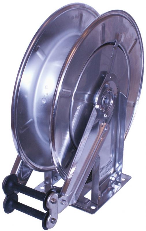 Högtryck, 400 bar, rostfria slangvindor försedda med ställbar arm/slangstyrning. Lätta att placera, även i trånga utrymmen. Kan även takmonteras.