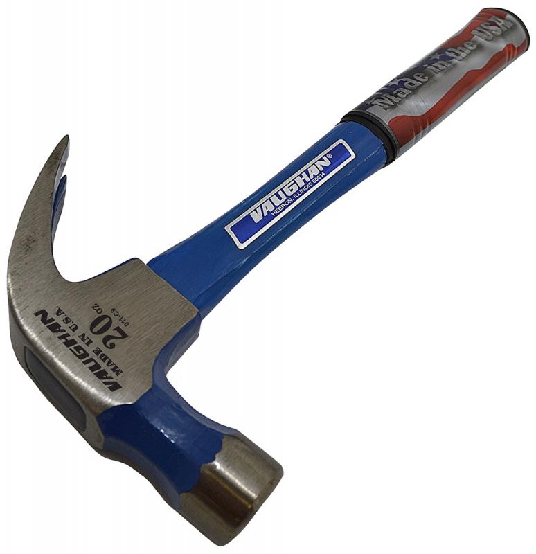 Snickarhammare Vaughan 16/20 Oz med glasfiberskaft och patenterat hålkäl absorberar vibrationer och sörjer för balansen och känslan av trä.