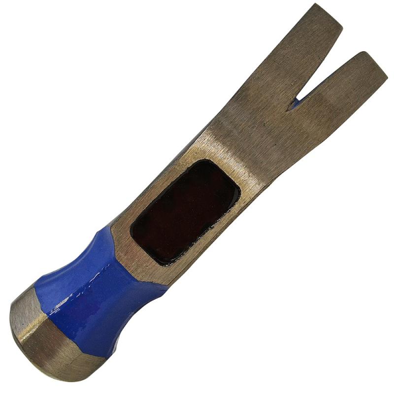 - Handtaget är fastsatt med huggen stålkil och epoxylimmat vid huvudet.
