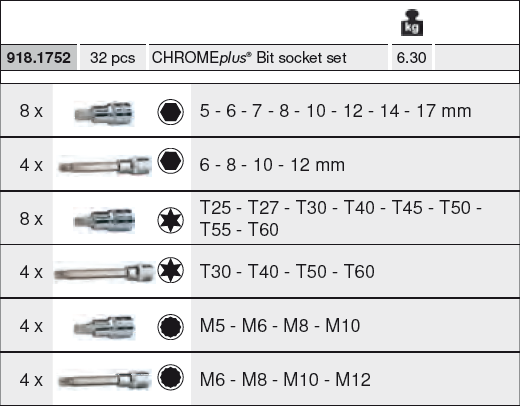 - Hylsorna är gjorda i krom vanadium, krompläterade och spegelpolerade.