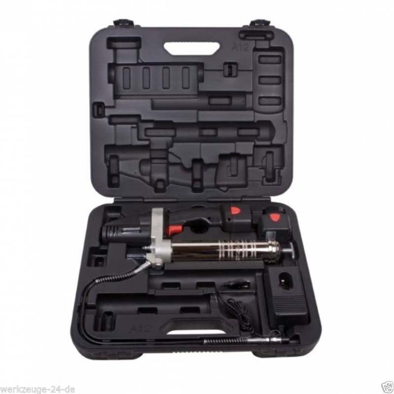 Fettspruta med lithiumbatteri, och klarar leverera ett tryck på hela 420 bar.