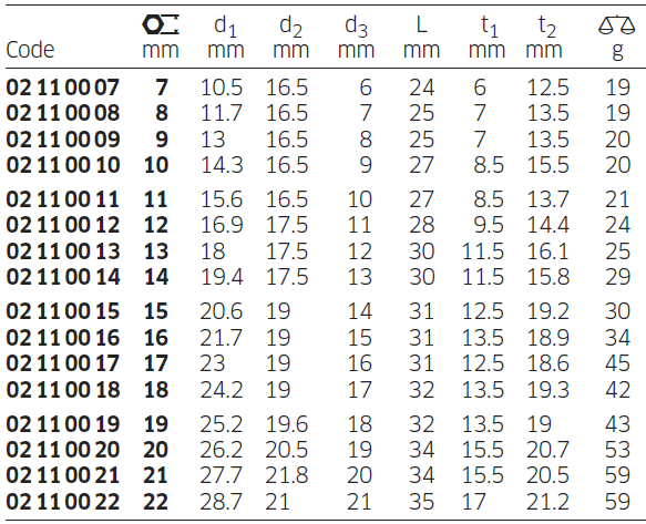 Tillverkade enligt DIN 3124/ISO 2725-1, ASME B 107.5M, E DIN EN 3709