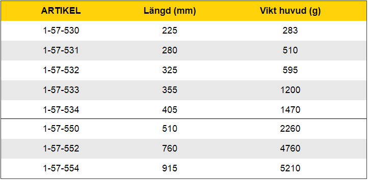 Compo-Cast / dead-blow uretansläggor, studsfria släggor med mjuka slagytor, helgjuten uretan-konstruktion som är ett extremt tåligt material.