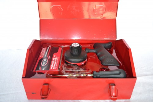 Däckreparationskit för personbil komplett i plåtlåda.