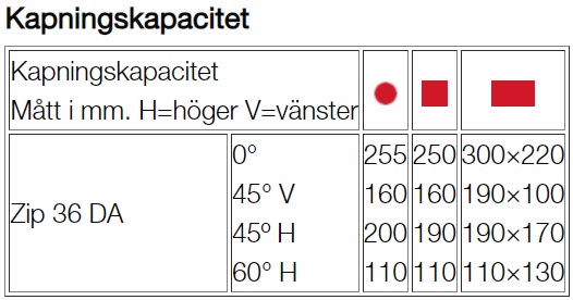 | Sågbladhastighet | 33 / 66 m/min |