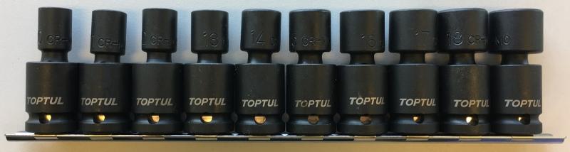 Toptul 1/2" Krafthylsor ledade 10-19mm