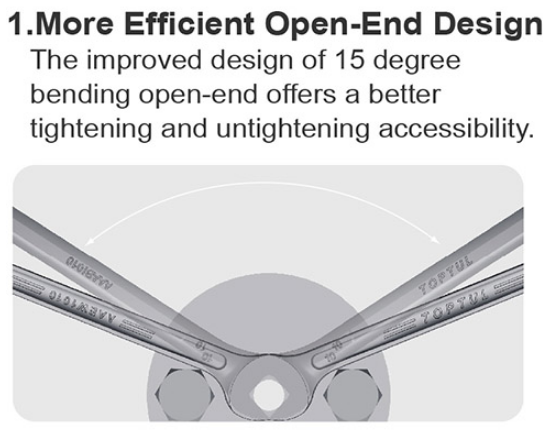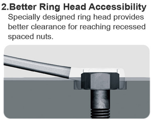 Blocknycklar i lättvikts "Hi-torq/Hi-performance"-utförande, 15° vinklad, extra tunn i ringänden, klarar 1.6x ANSI/DIN-standard, satin chrome finish.
