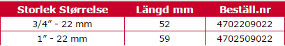 Kraftadaptrar som är tänkt att användas med kraftbits med utvändig 6-kant 22 mm.