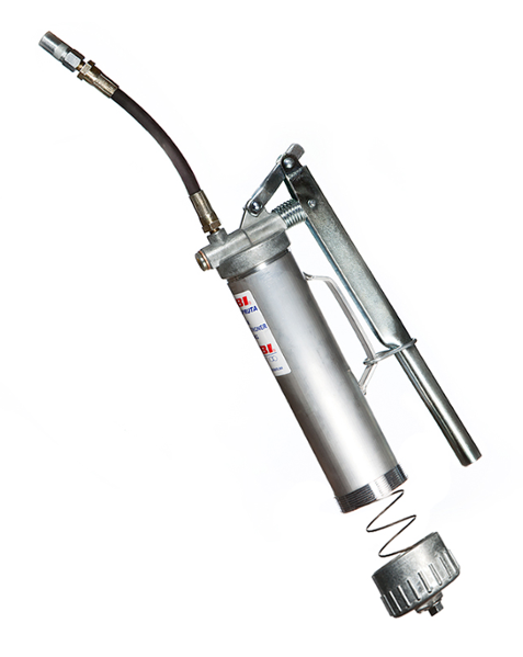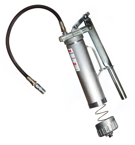 Patronen skruvas fast i pumphuvudet, vilket gör att det kan bildas vacuum då pumpen börjar användas. Pumpen har ett bakstycke med en enklare fjäder, som kan användas som hjälp för att underlätta frammatningen, framförallt om det är kallt och om man önskar att smörja i ett snabbare tempo än man kan göra om bakstycket inte används. Denna konstruktion gör smörjningen både enklare och renare att jobba med. Hävstångspumpen kan manövreras med både en eller två händer.