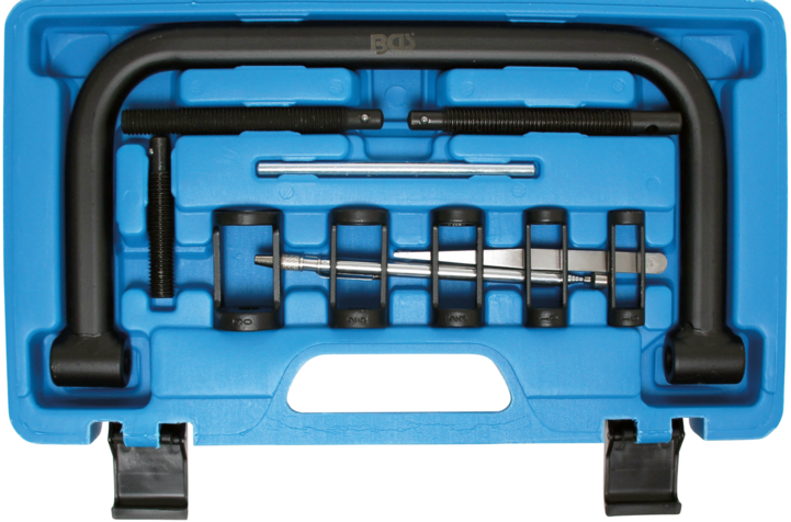 Ventilfjäderkompressor för mindre motor, som t.ex mopeder, minicrossar, motorcyklar. Medföljer 5 st huvuden i storlekarna 16-30 mm.