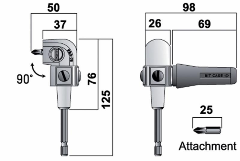 - En mycket liten och kraftfull vinkelbitschuck med 6,5 mm sexkantfäste att använda för skruvdragning i samtliga sladd och batterimaskiner på marknaden.