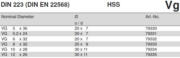 Gängsnitt DIN223/DIN22568, HSS, för bilventiler "valve thread" DIN7756.